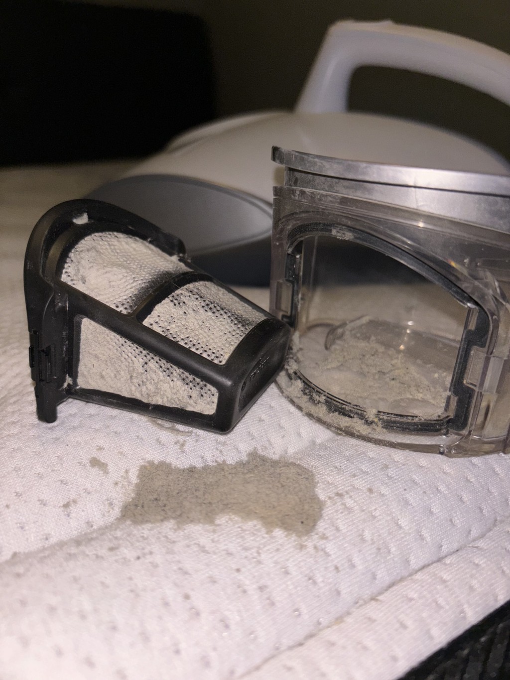 Húðflögur, ryk og bakteríur safnast saman með tímanum (sjá mynd f. ofan)